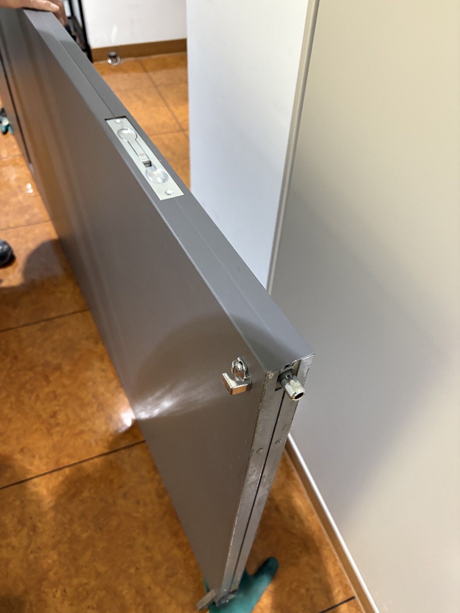 フロアヒンジの扉だったので扉を外しての交換になりました。