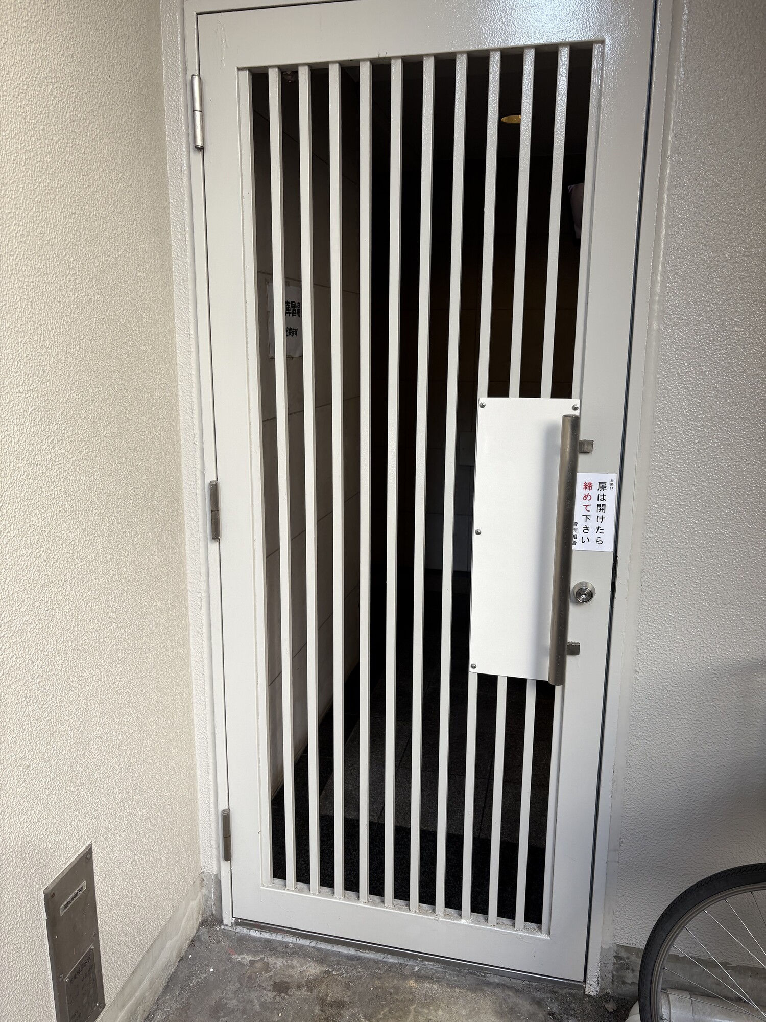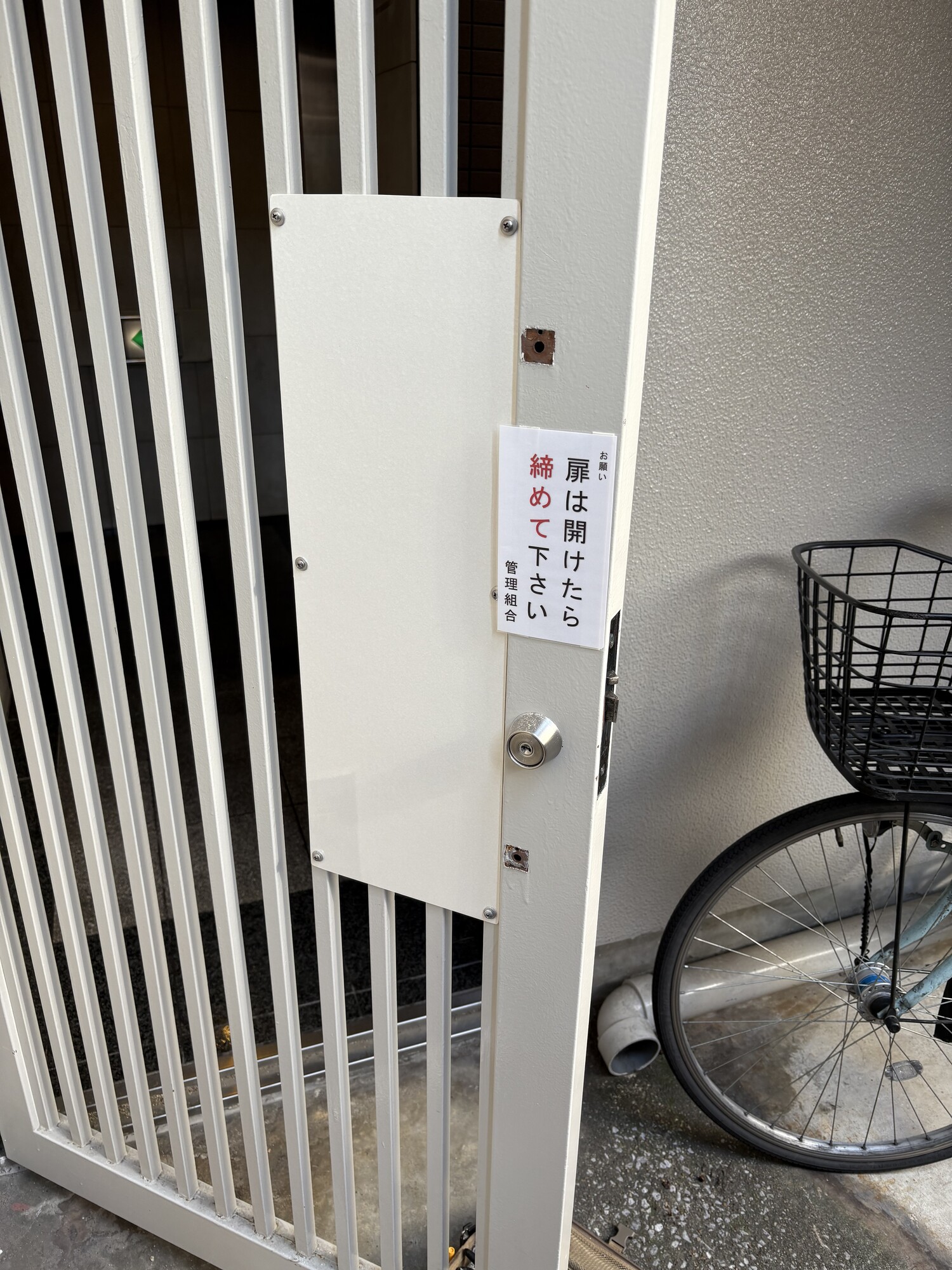 自転車置き場からの出入り口の扉に防犯用の板を取り付けました