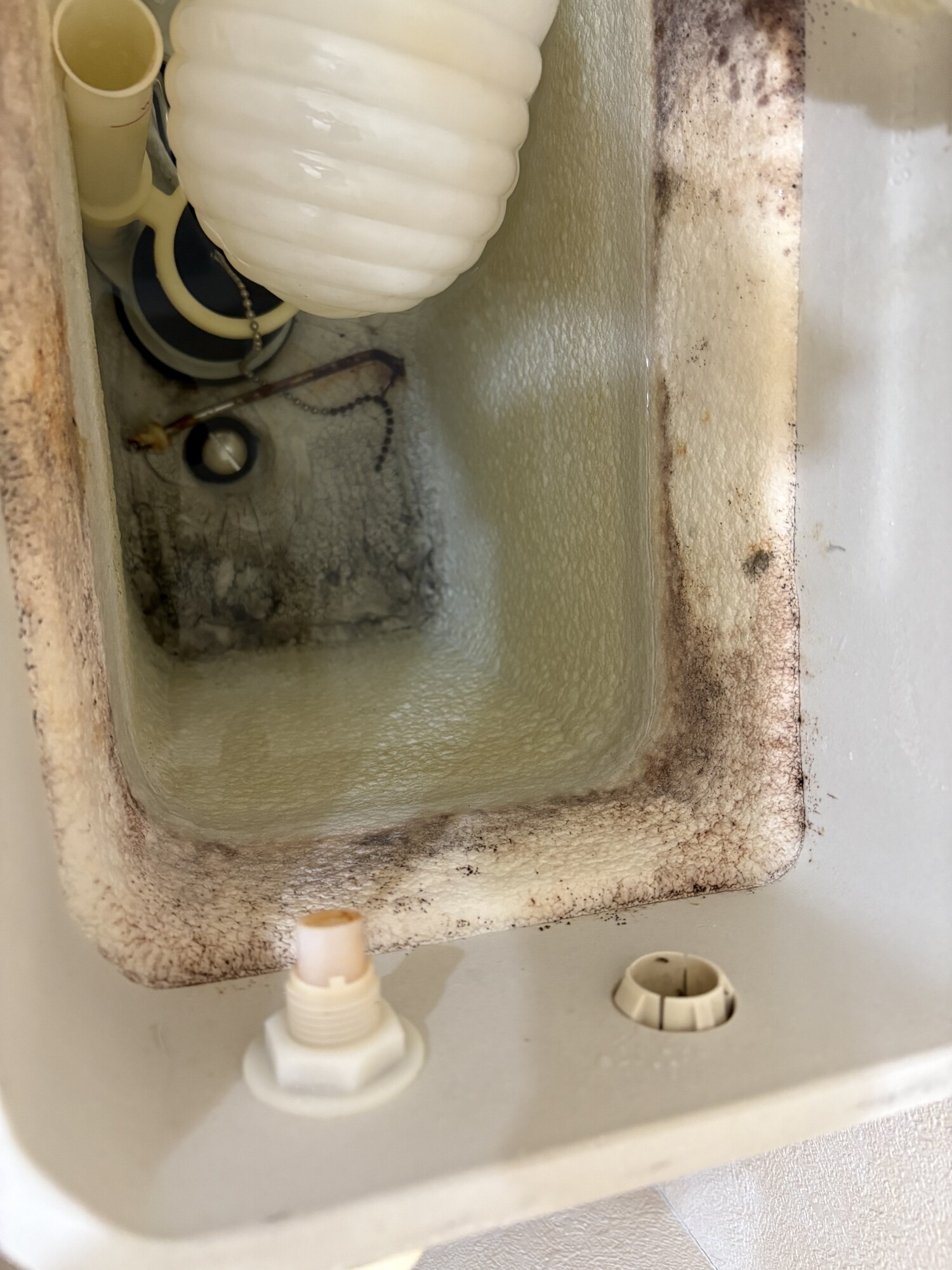 内部のホースが劣化によりひび割れを起こしそこから噴出されてタンクの外に水があふれていたようです。