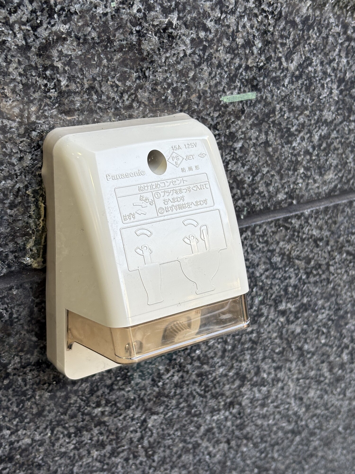ぶつけて割れてしまった防雨コンセントの交換工事です。