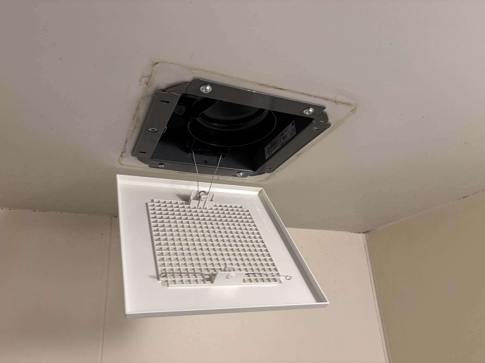 浴室の換気扇の動作時に異音が出るようになってしまったので交換工事を行いました。