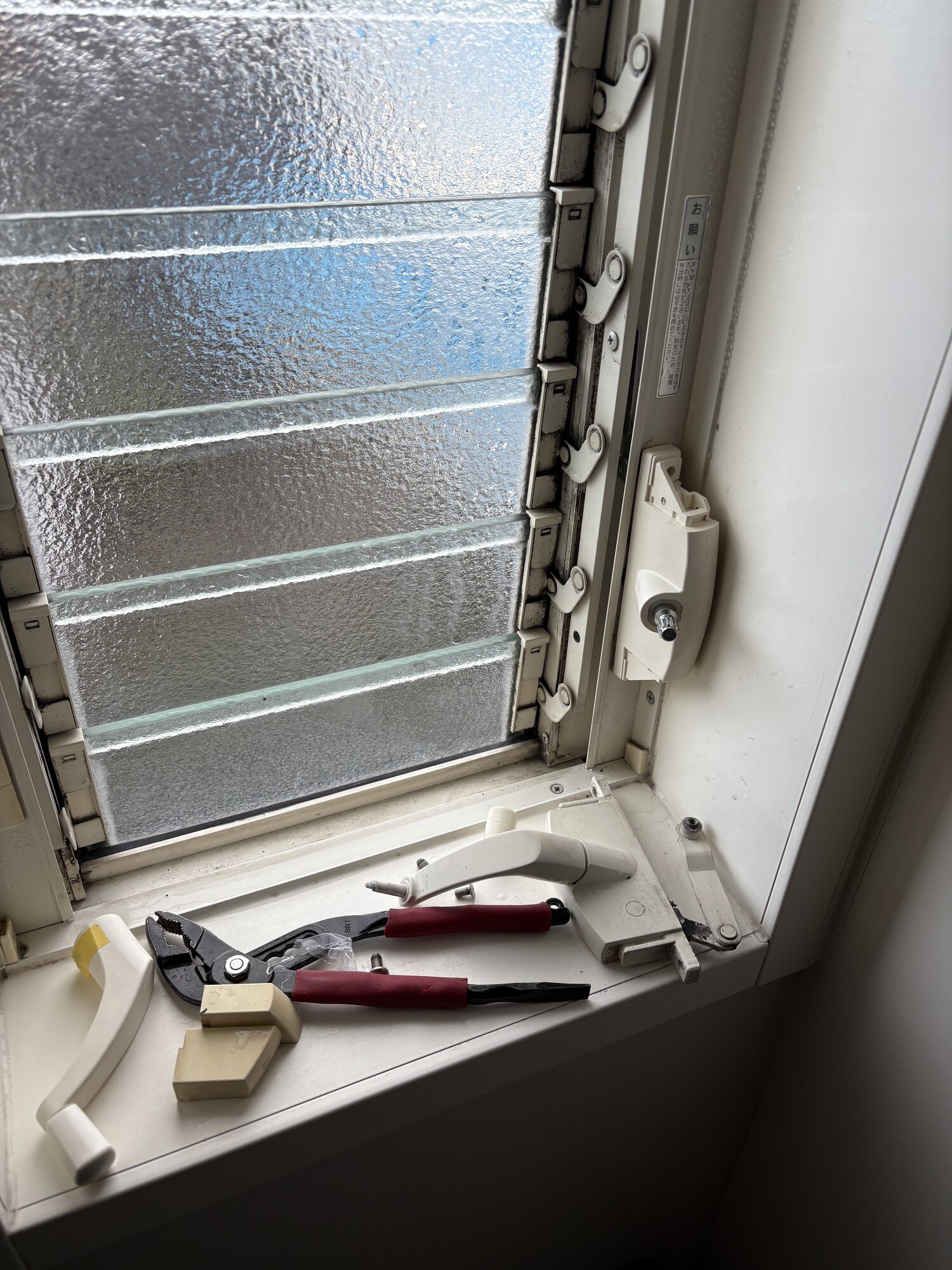 お風呂の窓のハンドルが効かなくなってしまったのでハンドルレバー本体の交換を行いました。